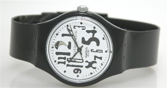 * Original 17mm genuine polished black plastic strap with matching black case and buckle